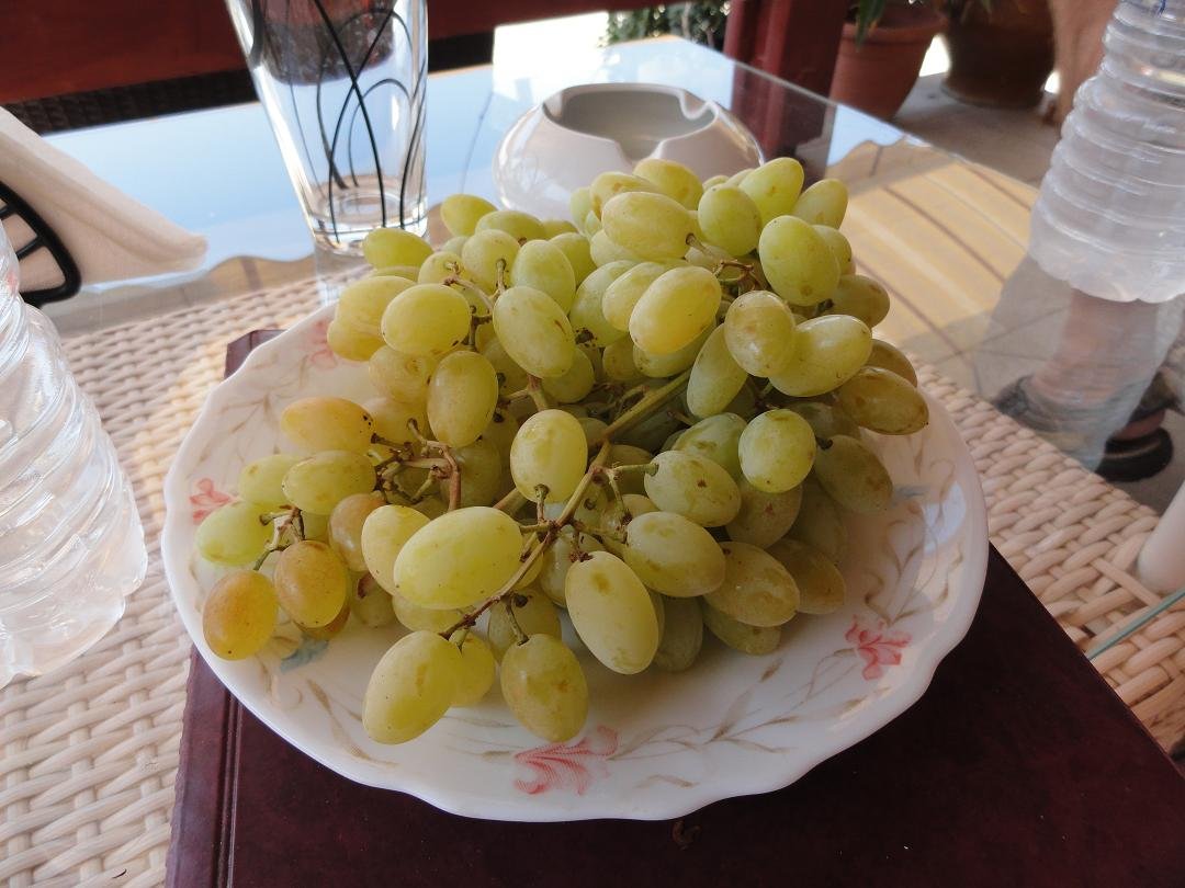 De El Greco taverna ligt aan het hoofdstraatje waar je het dorp in komt rijden, naast de beroemde oude boom en een van de gedenktekens aan de schilder El Greco. Wij bestellen er een omelet speciaal, een omelet kaas, gefrituurde courgette en twee cappuccino's. Alles smaakt prima. Er zijn wel aardig wat wespen zo begin oktober maar daar heb je wel meer last van in die periode in deze groene omgeving. Ons oordeel: een 8 uit 10 |