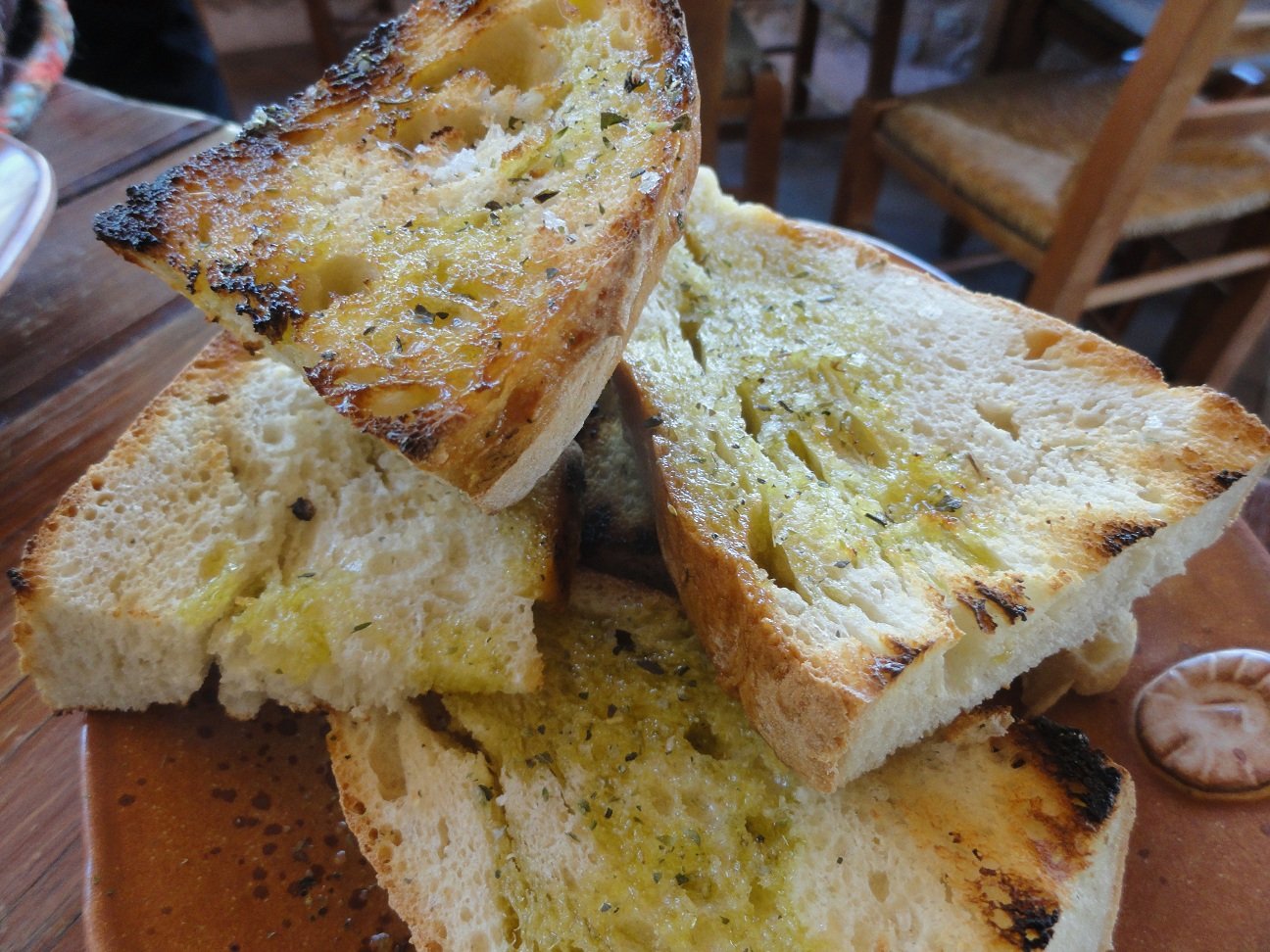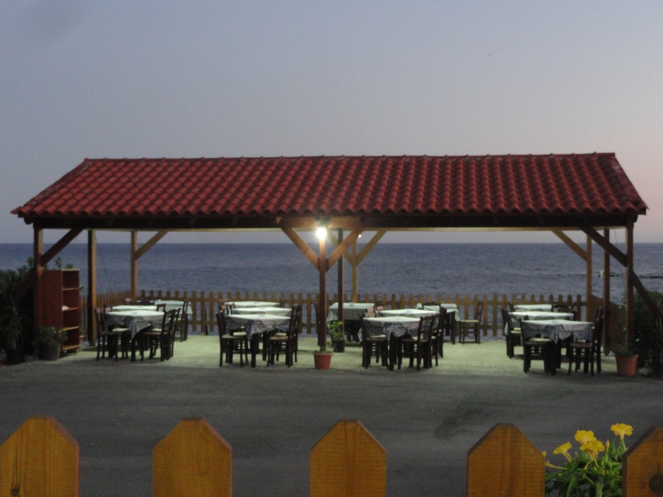Ook restaurant Blue Sky wordt aangegeven met een bord dat langs de hoofdweg staat die door Frangokastelo loopt. Dit restaurant ligt niet aan de zeekant, maar aan het einde van een kort pad landinwaarts (50 meter). Het eten is traditioneel Grieks. Hier zijn wij twee keer geweest en hebben verschillende gerechten geprobeerd. De wijnglazen zijn mooi en het brood is hier wel aan ��n stuk en vers. De kip van de grill is erg lekker en mals en de frietjes zijn knapperig. De Tzatziki, de kip nuggets en de saganaki (geflambeerde kaas) zijn ook goed. Ik moet wel vragen om een stuk citroen, wat normaalgesproken bij de saganaki wordt geserveerd. De volgende dag bestellen we de zwaardvisfilet, de lamskoteletjes en de zuchinies (courgetteschijfjes). De zwaardvis is in orde en de lamskoteletjes zijn ook goed (maar bij Babis net even iets beter). Het afrekenen gaat beide avonden erg moeizaam. Op de laatste avond moet ik de (Duitse) vrouw die er werkt zelfs drie keer om de rekening vragen (de laatste keer ben ik er maar naartoe gelopen en gewacht tot we hem eindelijk kregen). Calculeer hier een half uur voor in. Ons oordeel: een 7 uit 10 |