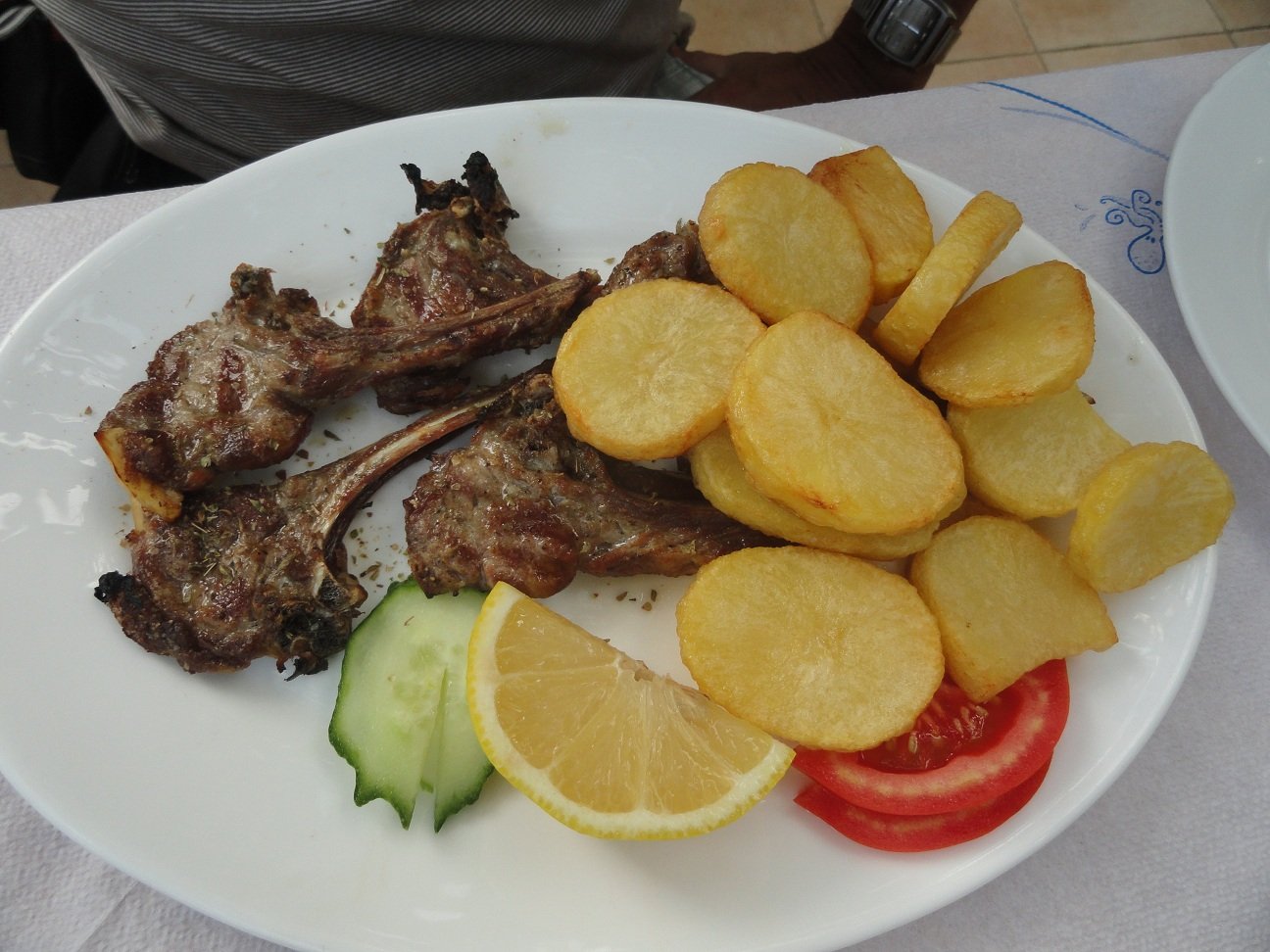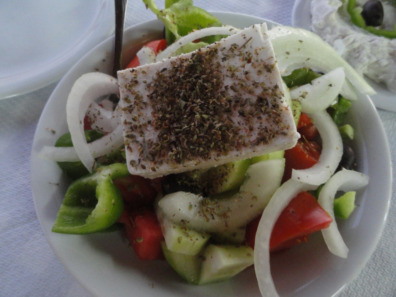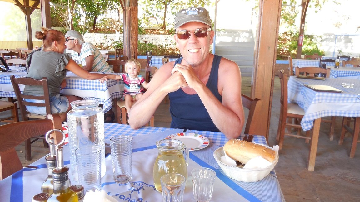 De kleine taverne die bij het Kakkos Bay Hotel zit heeft een beperkte kaart met Griekse gerechten, maar het is er wel goed, de mensen zijn er erg aardig en het is er goedkoop. Wij bestellen een Griekse salade, gehaktballetjes en tzatziki. Alles smaakt eigenlijk prima. De feta kaas is erg lekker en het brood vers en knapperig. We krijgen gratis yoghurt met geconfijte vruchtjes toe. Ons oordeel: een 8 uit 10 |