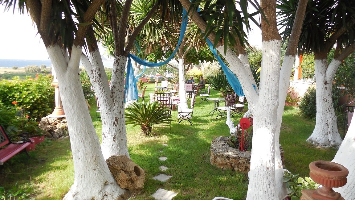 Deze taverna is te vinden in het westen van Kreta, bij de kustplaats en de opgravingen van Falassarna. Als je de weg naar beneden rijdt, kom je op een gegeven moment bij een splitsing met allerlei borden (o.a. met "Big Beach" erop). Hier sla je linksaf in plaats van naar het strand, en je rijdt naar de haven van Falassarna. Op een gegeven moment passeer je dan Vassilis Taverna aan de rechterkant, met een parkeerterrein en een hele mooie tuin. We bestellen er de tzatziki, de kalitsounia (gefrituurde kruidige groenten met een deeglaagje er omheen), de gegrilde feta kaas en de kip souvlaki. Alles smaakt erg goed, alleen is helaas het brood niet vers. De lokatie is erg leuk, met een mooi uitzicht en de bediening is erg vriendelijk. Ons oordeel: een 9 uit 10 |