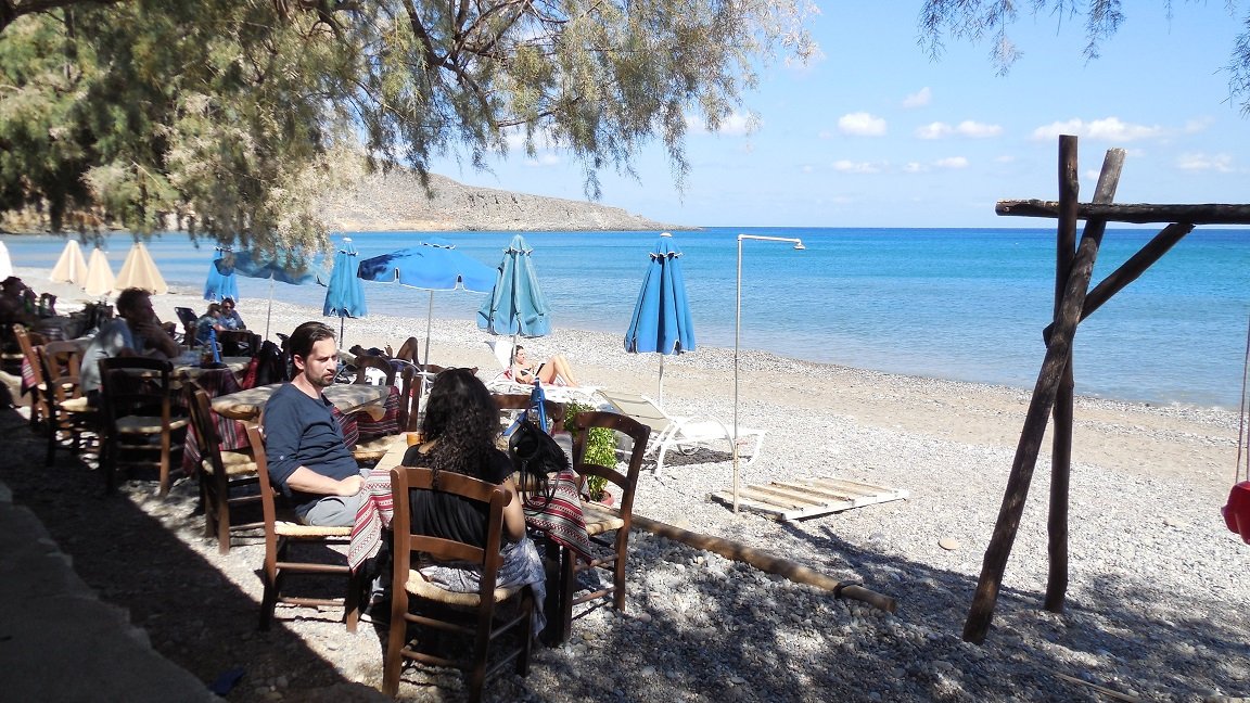 Voor dit restaurant zijn we speciaal even omgereden nadat we op Xerokampos op het strand hadden gelegen. Het is een plek waar we wel vaker zijn geweest en waar we hebben ontbeten en het avondmaal hebben genuttigd. De ligging, de bediening en de sfeer zijn er speciaal. De eigenaar van het restaurant heet Nikos en hij verhuurt ook een aantal kamers bij het strand van Kato Zakros en wij hebben er zelf al een paar keer gelogeerd. Aangezien het in Kato Zakros dun bezaaid is met accommodaties mischien een tip. Het eten in de taverna is simpel en eerlijk Grieks en de koffie is goed. Erg lekker zijn de speciale gebakken aardappeltjes van Nikos en zijn mezes (een bordje met van alles en nog wat voor bij je drankje). Ons oordeel: een 8 uit 10 |