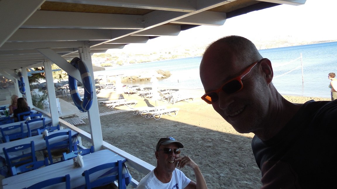 Deze taverna zit direct naast de grote parkeerplaats in het dorp Makrigialos, aan de linker kant als je richting de zee staat. Er is geen uitgebreide kaart maar het is er wel spotgoedkoop en lekker. Wij bestellen er de fried courgettes, tzatziki, twee maal de sole fish, een mix fish, chicken filet en green beans. Dat alles natuurlijk vergezeld van een karaf witte wijn. |