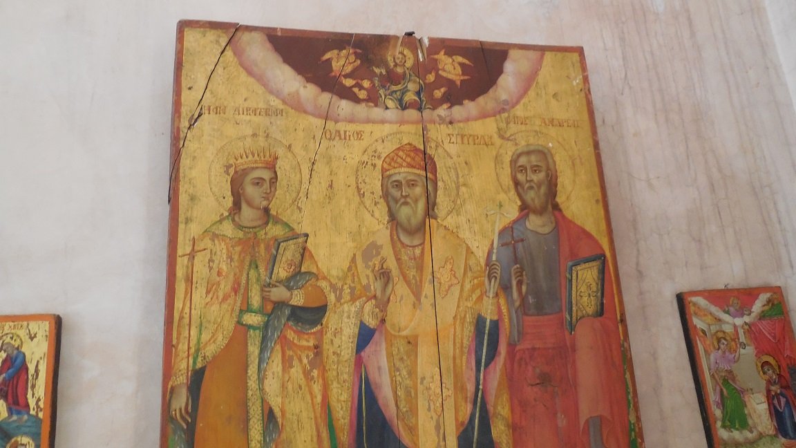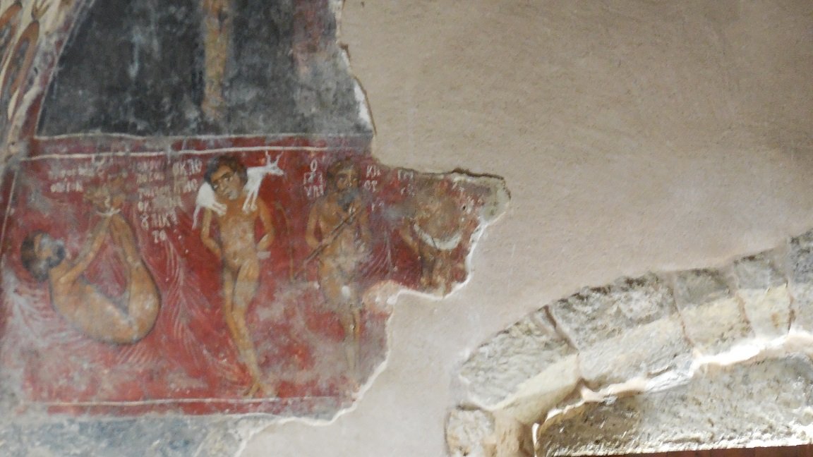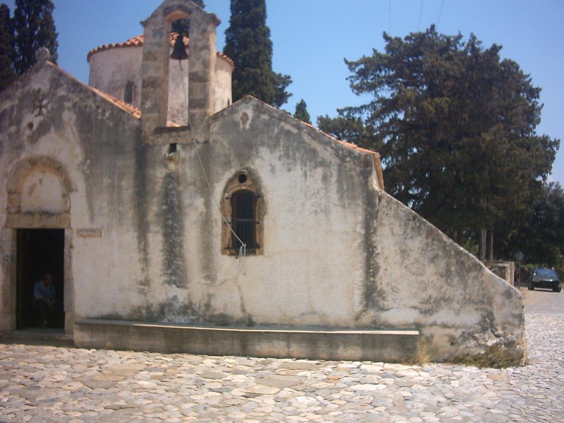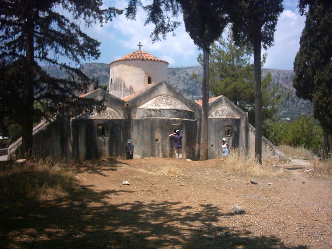 There was a 3 euro entrance fee to get into the church and you are not allowed to take any pictures. I suggest you take a look at the outside, peak in an than move on to other equal beautiful churches, like the one in Pirgos, if you want to take a look at equally nice frescoes for free. Also in the south west of Crete above Sougia and Paleochora there are countless Byzantine churches with their doors open, where you can walk in with your camera and make pictures if you want to. |