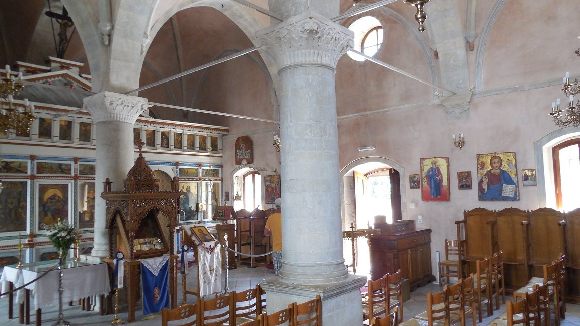 It is wise to park your car at one of the designated parking areas on the outskirts of the village and then walk through the village. Many of the streets in the village are narrow and not suitable for cars. At the beginning of the large "shopping street" of Kritsa you'll see the first church which is called the "Panagia Odigitria", which according to the inscription above the door dates from 1852, but of which the construction in reality was not complete until around 1870. If the church is open, it is worthwhile to take a look inside because there are beautiful old icons. |