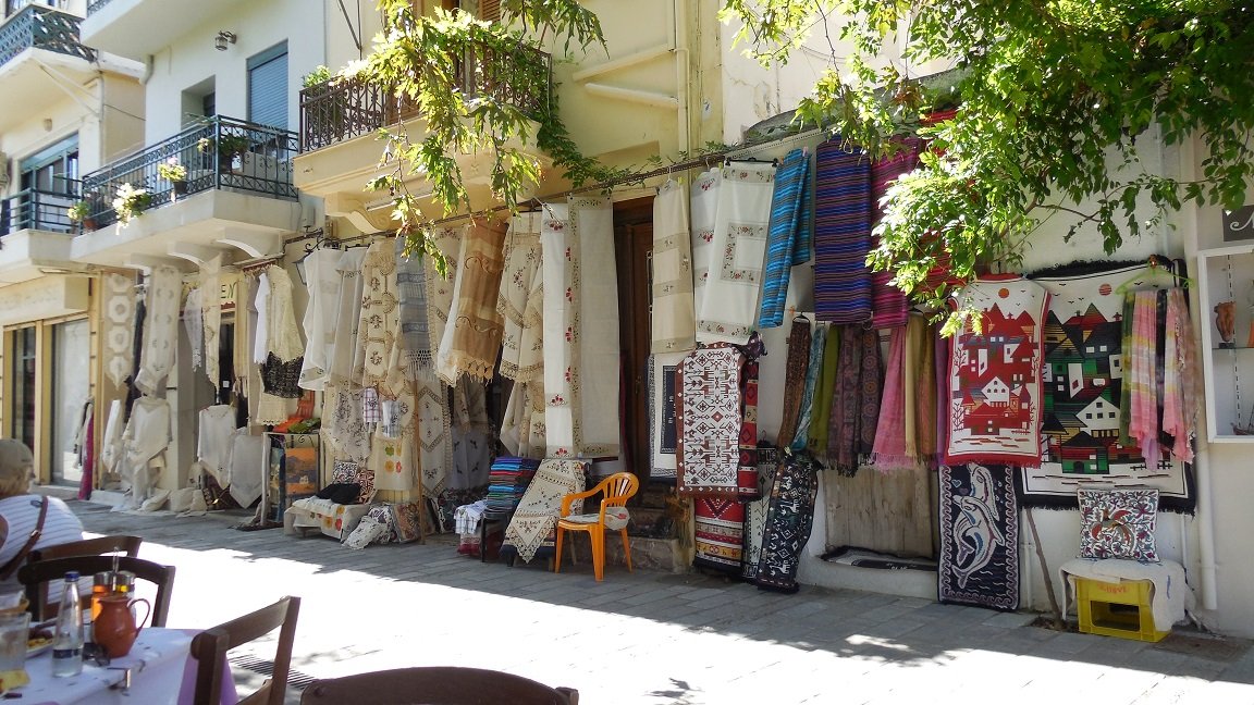 From its position on the Kastella hill Kritsa looks out over the Bay of Mirabello. For tourism the village heavily depends on the nearby 13th century Byzantine church of Panagia Kera. Most of the villagers still live from agricultural and garden products, but the rest of them has either opened a restaurant, or a lot of them have started weaving carpets, rugs, table cloths and clothing, which are hanging outside on the streets. The owners of the shops are usually old ladies that will try to stop you in the street as you walk by because they want you to have a look at their merchandise and hope to sell you some of it. |
