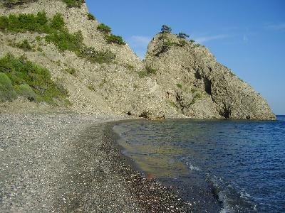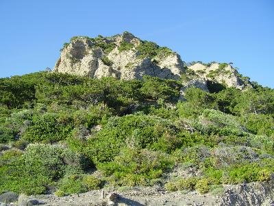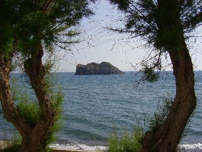 Het Faneromeni Strand is een vrij groot strand in het noordwesten van Lesbos even ten noorden van het dorpje Sigri. Het is bereikbaar via een gedeeltelijk ongeplaveide (in 2006) weg die je kunt nemen even voordat je Sigri inrijdt. Faneromeni Beach is rustig, redelijk schoon en er kan een flinke bries staan. Ik vond het zelf een van de leukste stranden van het eiland, maar ik houd dan ook van de rust. Op het strand staat een kerkje dat gedeeltelijk in de rotsen is gebouwd, waar je eventueel als je dat wilt een kaarsje kunt branden. Hier op dit strand was het zo rustig (en het is vrij groot) dus zijn we er zonder kleding gaan zwemmen en liggen. |