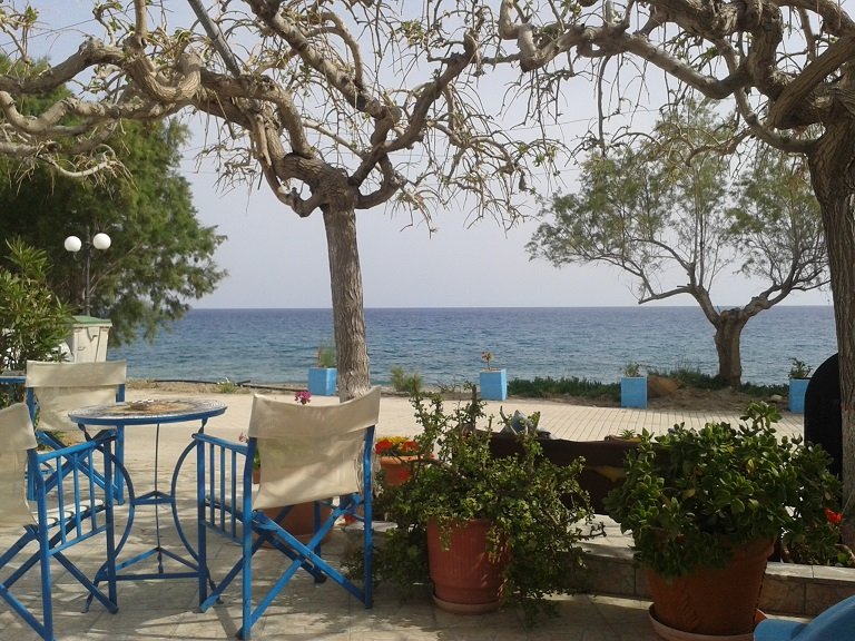 Deze taverna zit direct naast de grote parkeerplaats in het dorp Makrigialos, aan de linker kant als je richting de zee staat. Er is geen uitgebreide kaart maar het is er wel spotgoedkoop en lekker. Wij bestellen er de fried courgettes, tzatziki, twee maal de sole fish, een mix fish, chicken filet en green beans. Dat alles natuurlijk vergezeld van een karaf witte wijn. |