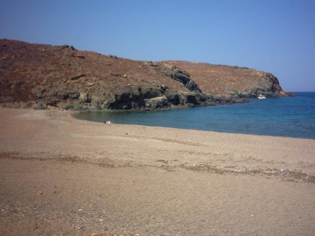 If you are looking for a quiet spot on the island of Mykonos than this beach is an option. It's remote and you will not find many people there. There are only a few houses and some gray buildings along the coastline where fishermen stall their boats when they are not sailing. There is a litle church on one of the rocks. Merchia, in the north east, is a pebble beach, and you will find litter that has been washed ashore. Nobody cleans it up. There are no tavernas, and for shade there is a big tree on the beach. I advice you to wear slippers when you get into the water. There is not so much litter floating in the sea, but the bottom is rather pebbly.
