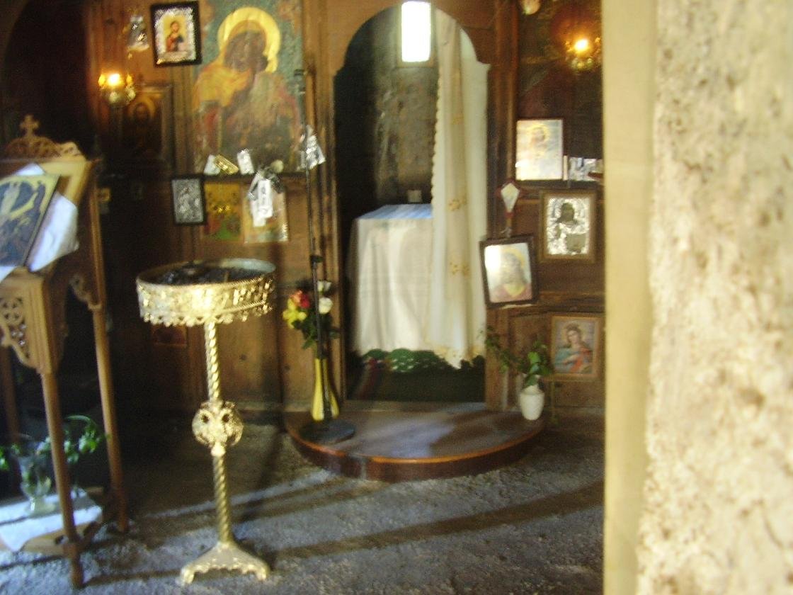 One of these churches is the Church of Christ Saviour or "Sotiras Christos Church" with paintings by the hand of Theodoros Daniel and his nephew Michaeli Veneris dating from 1303 A.D. The church was founded by the monk Leontios Khossakis. The site is clearly marked with a brown sign and the church is open (or it was when we were there, although somebody had put a chair against the other side of the door - but on the other side of the church there is another door which usually has the key inside). A bit further on the road if you walk through the village over the bridge on the north side of the village you find the 14th century Virgin Mary Church.