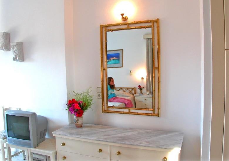 Bij Soultana's zijn er twee-en driepersoons kamers en studio's alsook enkele van de meest mooie en ruime appartementen in Pollonia van heel Milos. Echter, er zijn slechts twee van dergelijke appartementen bij Soultana's, en ze gaan snel, dus vroeg boeken wordt aangemoedigd. Elk appartement in Soultana's omvat 2 slaapkamers, een grote woonkamer, een zeer ruime keuken met eethoek, en een toilet naast de grote badkamer. Alle units zijn voorzien van airconditioning, en er is een schoonmaakservice twee tot drie keer per week. Er is ook gratis parkeergelegenheid tegenover het complex, en vanaf 2009 is er een ondergrondse garage en een zwembad. Ontbijt is niet inbegrepen in Soultana's. Degenen die willen ontbijten kunnen tussen 8.00 en 10.30 aan de overkant van de straat terecht bij de zee naast de deur. |