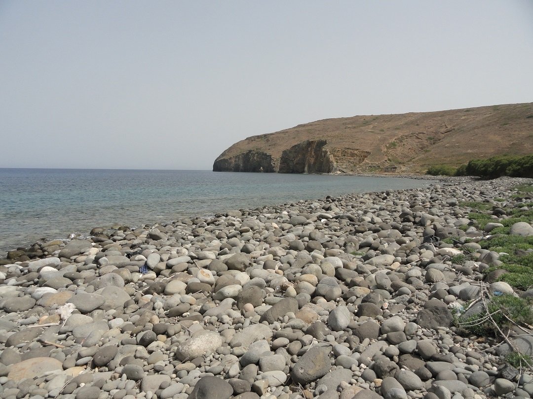 Stranden naast de opgraving van Phylakopi , tussen Phylakopi en op ongeveer 3 kilometer afstand van Pollonia. Aan beide zijden van de opgraving ligt geloof ik een strand, het ene met keien (dat overduidelijk hier op de foto staat) en aan de andere kan (volgens mij) een zandstrand dat we nog niet gezien hebben. |