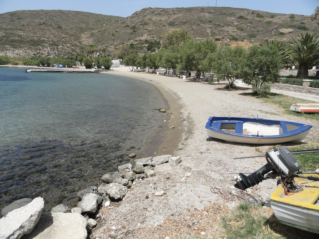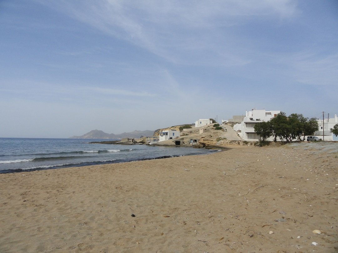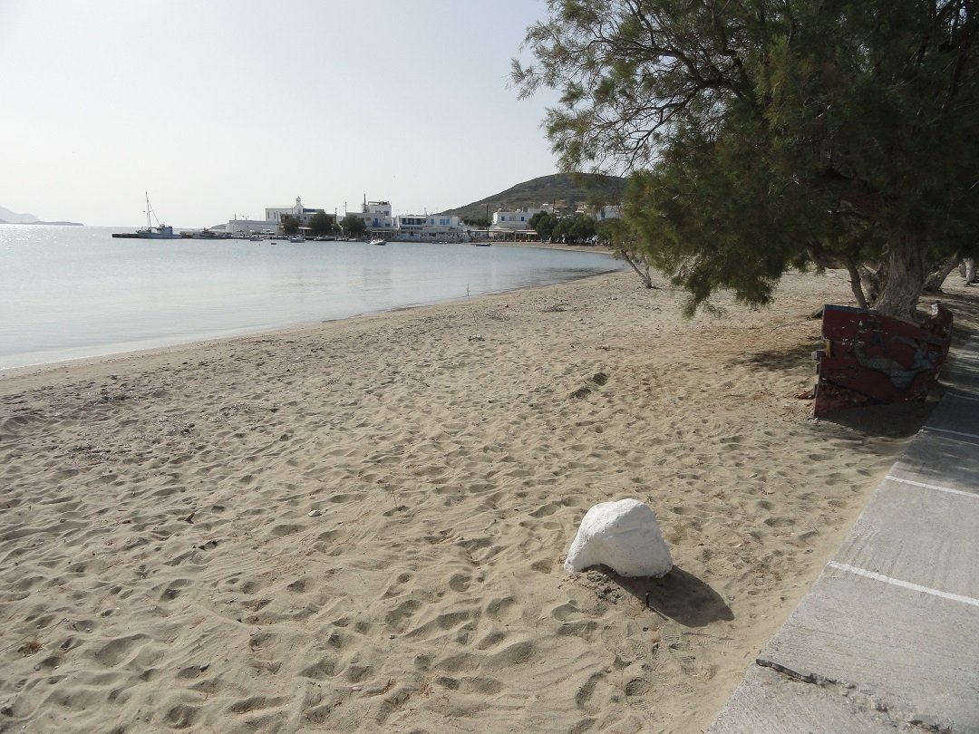 Lang zandstrand net achter het meer van Milos en niet ver van de luchthaven. Het is gelegen aan de zuidkant van de krater. Achivodolimni is een grotendeels ongeorganiseerd strand zonder faciliteiten (alleen een paar bomen en parasols in het begin, maar dat is niet het beste deel van het strand). Er drijft wat rommel in het water aan het begin van het strand, maar loop honderd meter door en het is weg, het water is kristalhelder en het strand wordt schoon. Het is een zandstrand met ondiep water en het is heel gemakkelijk om in het water in te gaan. Het blijft een hele tijd ondiep. Toen wij er waren waren er acht mensen op het (lange) strand in totaal en ten minste vier van ons waren in naturisten-stijl zonder zwemkleding (inclusief ons dus). Twee van hen konden we niet zien, omdat ze zo ver weg zaten - zoals ik al zei het is een lang strand. Niet veel schaduw op het strand en geen taverne op het moment, maar heerlijk! Een strand voor naturisten. Breng je eigen water en een goede sunblock en ga lekker ontspannen. Vanaf het strand is er een uitzicht op het dorp Adamas. |