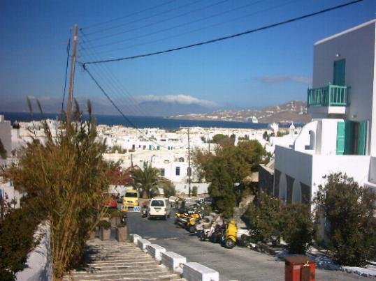We waren eigenlijk van plan om in Mykonos Stad iets te gaan zoeken, maar de man die mij aansprak bleek een pand te hebben in Platis Gialos, een badplaats drie kilometer van Mykonos stad af, maar ja: er was strand voor de deur, en daar is natuurlijk ook iets voor te zeggen. Bovendien was het al laat, en wat maakte ons het uit. Er was een regelmatige busverbinding met Mykonos stad, elk half uur tot een uur of 1 in de nacht, dus okay, wij gingen mee. Het appartement zat in het gebouw van Mina Studios en was ontzettend leuk, twee kamers groot en met twee balkonnetjes. Ik had lekker m'n eigen slaapkamer, ook prettig. En eigenlijk was het ook helemaal niet zo duur als we gedacht hadden. We betaalden toen 9000 drachmen, wat neerkwam op zo'n 54 gulden of 25 euro per nacht (ondertussen is het wel een stuk duurder geworden...). En Mykonos bleek heel erg leuk te zijn. Ik kon gewoon ongeschoren en met mijn plastic slippers aan de deur uit. De meeste dingen waren op Mykonos inderdaad wel een stukje duurder, zoals uit eten gaan of ergens een borrel halen, de supermarkten, maar als je een beetje oplette viel het allemaal wel mee. In de jaren daarna ben ik steeds terug gegaan naar het eiland Mykonos, soms wel drie keer in een seizoen. Op deze pagina's wil ik wat informatie geven, en ik heb ook wat ruimte gemaakt voor accommodaties in Mykonos, betaalbare hotels op goede lokaties (ik verblijf tegenwoordig het liefste in Mykonos stad), die gerund worden door aardige mensen. |