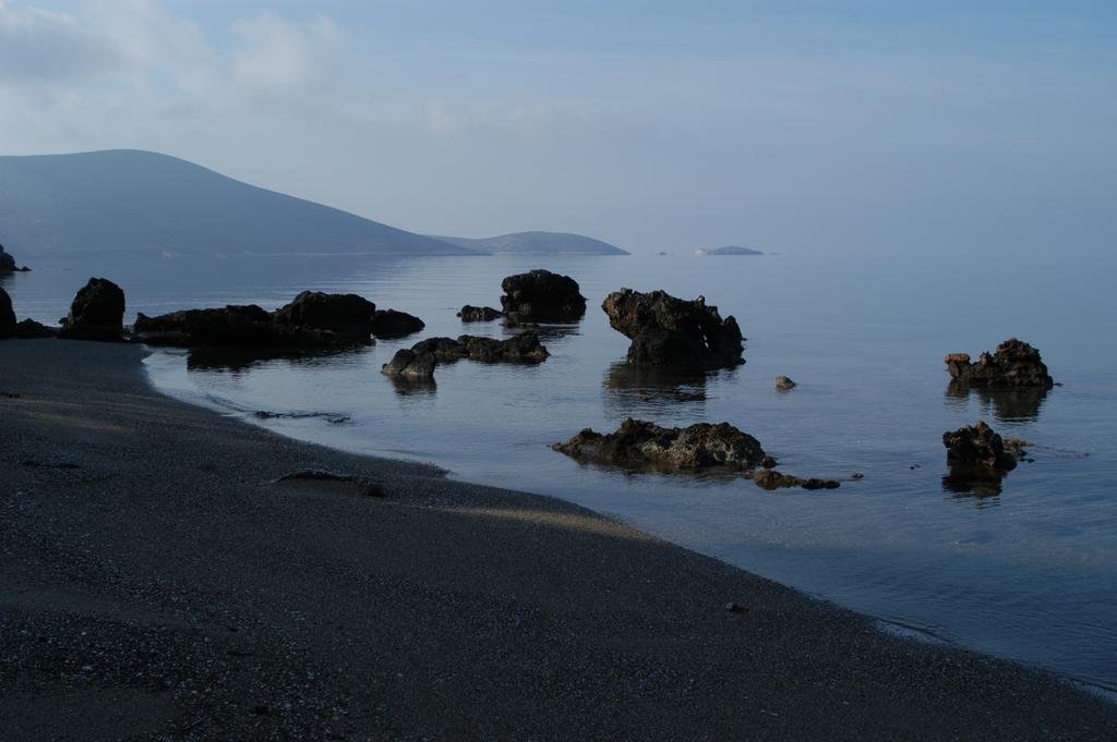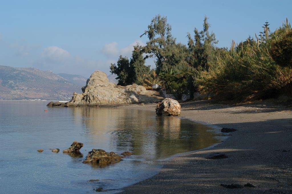 Nifi beach or Nyfi beach is a small sandy beach that is not organized (no umbrellas or sun beds) in the southwest of the island of Skyros, just south of the beach of Kalamitsa. There are some rocks in the sea in front of the beach. Nifi beach is located in a green area and there are also some palm trees and other trees that provide shade. Nifi beach is about 15 minutes drive from the capital Skyros Chora (distance approximately 14 kilometers). There are a small number of houses on the hill that surrounds the beach.