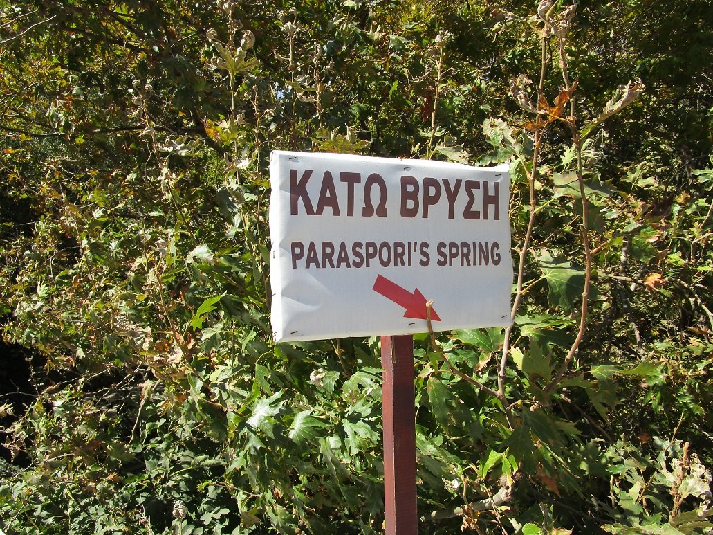 In the area where Paraspori lies there are many water sources where water flows in from the mountains. Just outside Paraspori and signposted is the "Paraspori spring", a water source that can be reached via a staircase leading down from the road. The water source is surrounded by old and large trees.