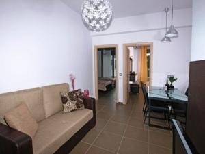 There is a living-room as well which contains a kitchen (with an oven) and a sofa that can be used as two beds for children.