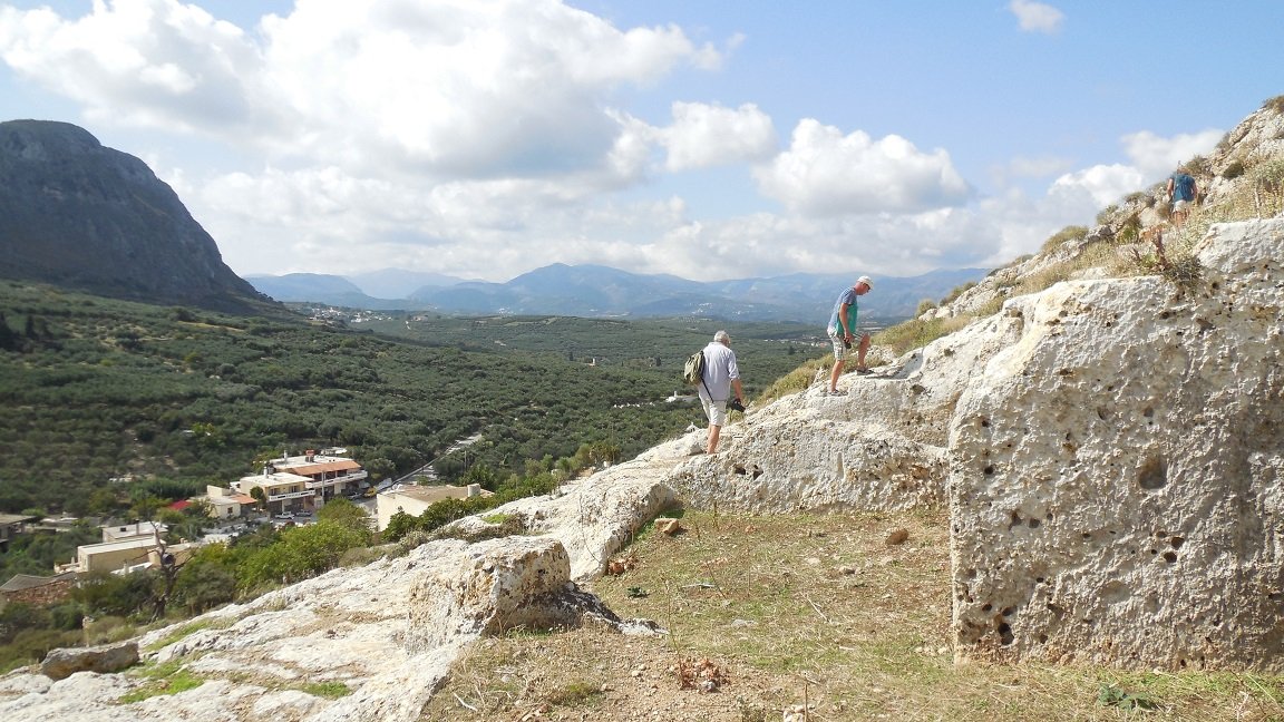 On the outskirts of the village, and marked with a sign, you will find the ancient city of Rokka. The walk up starts at a monument that stands in the village to commemorate World War II. There is also a sign that explains about the old town, but it's written in Greek (handy for the tourists). Rokka probably was not an autonomous city, but part of the nearby town of Pollyrinia. Objects have been unearthed here that date from the 5th to the 2nd century BC. For some time Ancient Rokka has been declared an archaeological site. There are remnants of walls of houses, houses carved into the limestone, carved staircases and water tanks and pipes for rainwater. Scattered around the grounds there are also many shards of pottery.