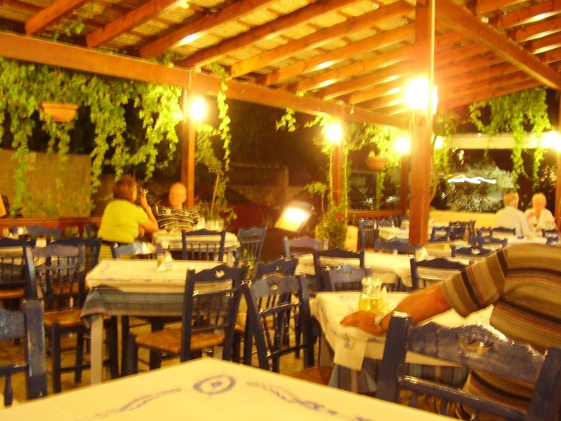 Deze taverna ligt langs de weg die door het dorp Pirgos leidt, het dorp met alle keramiekwinkeltjes. Er wordt veel gebarbequeed (moeilijk woord...) en dat is aan sommige tafellakentjes te zien (er zitten kleine brandgaatjes in van de vonkjes). Het is er goedkoop (2 euro voor een cappuccino in 2007) en de koffie is uitstekend, met een grote berg slagroom erop. Ons oordeel: 7,5 uit 10 |