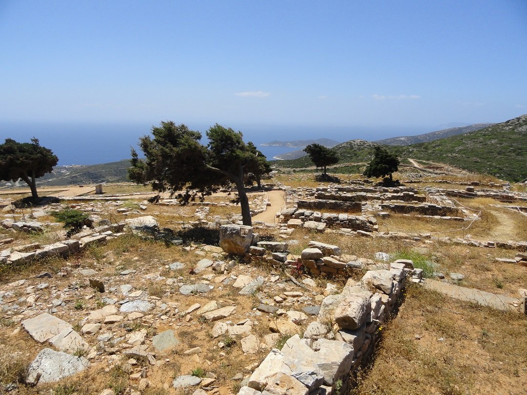 On the rather isolated eastcoast at 5 kilometers distance from Apollonia lies the village of Kastro, the former capital. This can easily be called the prettiest village on the island. Kastro lies on top of a hill and has been inhabited for over 3000 years. Below in the village you can park your car. Kastro is free of cars and there are quiet streets with pretty houses, gates and there is an abundance of churches. You can still see a part of the old city wall, and you will see ancient artifacts scattered around the village, mostly sculptured sarcophagi. Some houses have incorporated an antique column, or a Venetian coats of arms or an antique tumbstone in the outside wall. In Kastro you can also find the Archeological Museum. From Kastro there are beautiful views over the Aegean see, the small beach of Kastro below and over a beautiful church that stands on a rock on the coastline. |
