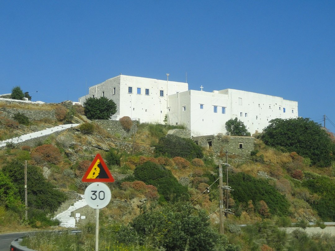 The most important sight on Sifnos is the Chrisopigi Monastery which is situated on a small island (connected by a road) west of Faros, in the south of the island. It dates from 1650 and was built on the site of an older church. Next to the monastery is a very nice sandy beach. Another interesting Monastery is the Monastery of Panagia tis Vrissis, which is situated in the village of Exabela a few kilometers south of Kastro. It was built in the 17th century on a site where once the old church of Agios Antonio stood. Inside there are interesting old frescoes and icons to be seen. |