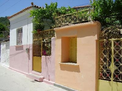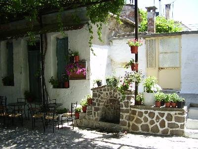 Je vindt veel oude huizen en nauwe straatjes in het dorp Sikounta. Het ligt even ten noorden van de Golf van Geras. De grote kerk heeft een (zo te zien) nieuwe betonnen toren. Ervoor staan twee bronnen waar je vers water kunt halen. Hier en daar staan de betonnen skeletten van huizen in aanbouw. In de acheraf straatjes is het erg stil. Het is gewoon een dorpje op Lesbos, niet echt heel bijzonder, maar wel een met veel plekken om water te halen, en een plein dat in de schaduw ligt. |