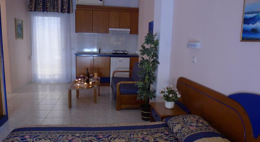 Only a short walk from the sandy beach of Paradeisos, George & Sia's House enjoys views of Toroneos Gulf, surrounded by a flowered garden. It features self-catered accommodation with free WiFI. Beach umbrellas and mats are provided. All air-conditioned studios open to a balcony with outdoor furnishings and a sun umbrella offering garden, mountain and sea views. Their kitchenette is equipped with cooking hobs, a mini fridge and coffee maker. A flat-screen TV with satellite channels, an iron and a hair dryer are included. Guests staying at George & Sia's House will find taverns and shops within a short walk. The centre of the lively Marmaras is 5 minutes away on foot. A bus stop is available at 450 metres, from where free pick-up is provided. Free parking is possible on site. Check availabilities and prices & book George & Sia's House in Neos Marmaras, Chalkidiki - click here. For all hotels, apartments, studios and villas in Neos Marmaras in Halkidiki - click here. |