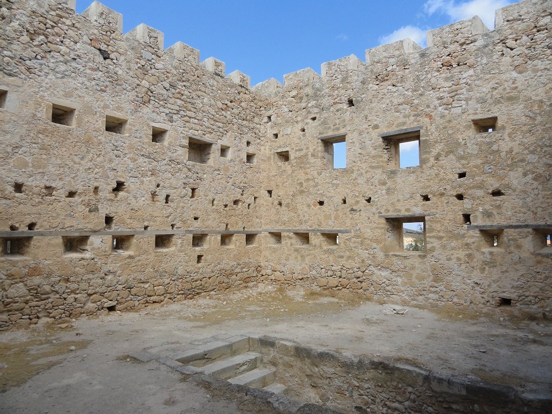 In de haven liggen zoals gewoonlijk de kaiks en daartussen wat nieuwere boten en privé jachten, en soms een vrachtschip of een veerboot, want Sitia is ook het beginpunt voor Lane Lines, die Kreta verbindt met de eilanden Kassos, Chalki, Rhodos en Karpathos, en de veerboten gaan ongeveer drie keer per week ook richting Agios Nikolaos, het eiland Milos, en daarna naar het vaste land van Griekenland. Er is een lange boulevard met een heleboel taverna's en coffeeshops, en er staan wat palmbomen en rozen. Daarachter zijn de winkelstraten. De stad wordt afgemaakt met het Venetiaanse Kasarma kasteel dat in zijn huidige vorm stamt uit 1631. Het is gebouwd op de restanten van een ouder Byzantijns kasteel. Binnen de muren staat een drie verdiepingen hoge toren. Dit is het voormalige wapenhuis van de Venetianen, het zogenaamde "casa di arma". Wat er van deze Venetiaanse vesting is overgebleven is misschien minder imposant dan wat je je andere steden aan kunt treffen, maar het uitzicht vanaf het fort is prachtig. Er is een centraal plein / stadpark met palmen en een borstbeeld van een beroemde Kretenzische dichter, Vintzentzos Kornaros, die in Sitia is geboren. |