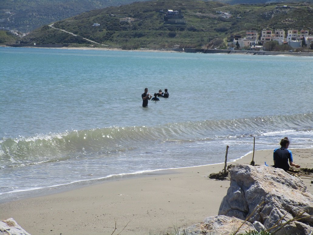Het stadsstrand van Sitia is ongeveer een kilometer lang, niet zo breed en niet erg uitnodigend. Het ligt ook vlakbij de hoofdweg. Erg schoon kwam het niet over (op de plekken waar geen parasols staan). Wel is het water helder en het strand loopt er langzaam af in de zee, dus het is geschikt voor kinderen. Mijn oordeel: voor zo'n grote stad is het helemaal niet slecht, en het is leuk om er te gaan kijken want er heerst een prima sfeertje. Strandliefhebbers gaan liever ergens anders heen. |