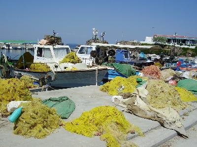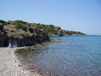 Vlakbij Skala Mystegna, in het noordoosten van het eiland (op de route Mytilini - Mantamados) ligt het vissersdorp en het strand van Skala Neon Kydonion. In eerste instantie deden de rotsen daar me een beetje denken aan de Algarve in Portugal. Het is een klein dorp met de gebruikelijke kaiks, een paar hotels en tavernas en een klein strand, maar even verderop ligt een van de aardigste strandjes van het eiland. |