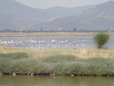 Skala Polichnitos is village situated in a wetland area a little north of Vatera Beach in the Bay of Kalloni, in the south of Lesbos. It is also an area where you can find salt pans, and big white mountains of salt rise up from the ground. Skala Polichnitos attracts great numbers of birds, even during the winter time. It is a good spot to look for the Greater Flamingo (noted to be very tame here), Great White Egret, Avocet, Black Stork, Pintail and Black-necked Grebe and many others. In addition they are the main stronghold for Redshank in Lesvos. The surrounding area can be very good for Rollers, Golden Orioles, Purple Heron, and Golden & Spur Winged Plover. On the 10th of April 2001 a concentration of more than fifty Red-throated Pipits here was impressive in a fairly poor year for the species on the island. It is also worth noting that on the 1st of May 2001 a party of more than thirty Red-footed Falcon were seen here. Nevertheless it is a fact that this area has not yet been checked out thoroughly, so it is safe to say that you could have sightings of birds that have not yet been recorded.
