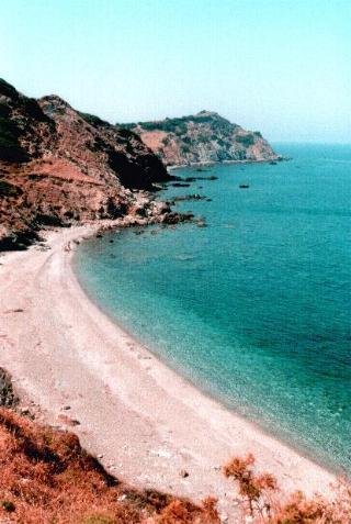 Behind Koukounaries (meaning "pinecone" and the beach is named after a special kind of "umbrella-pinetree" growing here) lies a small protected area with a sweet water lake, where different kinds of birds can be seen. It is called the Strofylia Lagune. Behind the beach is a dense pine tree forest. Koukounaries beach is sometimes also called Chrissi Ammos Beach, meaning "Golden Sand". There are umbrellas and beach beds for rent and there are all kinds of facilities, such as tavernes and different kinds of accommodations, from quite basic to luxury. There is a camping and there are a few bars and kiosks selling things as cigarettes, magazines, soft drinks and candy. At the beach there is also the possibility to do watersports. For hotels, apartments and studios in Koukounaries Beach - click here. Next to Koukounaries Beach (south of it) lies the oficial naturist beach Banana Beach (bus stop 24). The last part to this beach you have to walk since there is no bus stop. There are some facilities however such as a couple of tavernas. The name of the beach remains a mystery since there are no banana trees to be found here. Banana beach consists of two beaches of which the smaller is most visited by the naturists. Bus stop 23 is for the people that want to visit a couple of more quiet beaches that can be reached after a 30 minute walk through the pine tree forest over a sandy path. The beaches are called Elias and Agistri Beach. Elias Beach too is a beautiful sandy beach and there is a taverna that serves freshly caught fish. There are no hotels or possibilities for watersports at the beach. The taverne doesn't open untill late in the season, so it is advised to at least bring a bottle of water. When the taverne is open they also rent out sun beds and umbrellas. The water is shallow and it is easy to go into the sea. Elias Beach is surrounded by sand dunes. By many people this beach is considered the most beautiful and picturesque beach of Skiathos island. The larger part of the beach is used by naturists with the exception of the small part where the taverne with its sunbeds is situated. Since 2013 there are also small boats visiting the beach with people wearing textiles, but apparently they stick to the side of the beach where the taverne and the sunbeds are. At the fork in the road that you see when you take the path leading from bus stop 23 take the path on your right. The left one leads to Mandraki Beach. Agistri and Xerxes Beach are the names of the two other nearby beaches. Agistri beach is less sandy. Both beaches are relatively quiet but they can suffer from the northern winds. All these beaches can be victim to seaweeds and rubble that washed ashore. Bus stop 24 is the stop for the quite large Mandraki Beach (once a naturist beach but now mainly occupied by people in textiles - still with space for naturism on the beach though), from a path leading from the left hand side of the stop. The beach is surrounded by red sandstone cliffs. On the beach is a taverne (clothes on) and at the other side of the beach it is clothes off optional and mainly for naturists. At the fork in the road that you see when walking the path from bus stop 23 take the path on your left. The one on your right leads to Mandraki Beach. Bus stop 25 is for Aghia Eleni Beach. The beach is located north of the two Banana Beaches, 14 kilometers from Skiathos Town and 1 km from Koukounaries. Agia Eleni Beach is a relatively fairly quiet sandy beach surrounded by pine trees. One part of the beach you can rent umbrellas and sun beds, and you can practice water sports. On the beach there are two small tavernas. People come here to chill out and to watch the beautiful sunsets you have here. The water at Agia Eleni Beach is shallow and suitable for small children. The beach is named after the nearby church of Agia Eleni. The north coast of Skiathos is quiet and is barely inhabited. There can be some wind from time to time on this side of the island. On the north coast are two more beaches: Elia and Asselinos (with camping), a popular destination for people that like it more quiet. It is also more quiet on the east coast, with the beaches of Xanemo (with camping) and Lalaria Gialos, that can be reached by boat from Skiathos town. Lalaria Beach is a beautiful beach with white photogenic pebbles. Bus stop number 10 is for Achladies Beach, which is situated in a protected bay surrounded by green hills. It is a long and narrow organized sandy beach where you can find tavernas, shops, supermarkets and accommodations. There are beach beds and umbrellas for rent and you can practice water sports. From Achladies Beach you look out over the island Tsougria and further away island of Skopelos. |