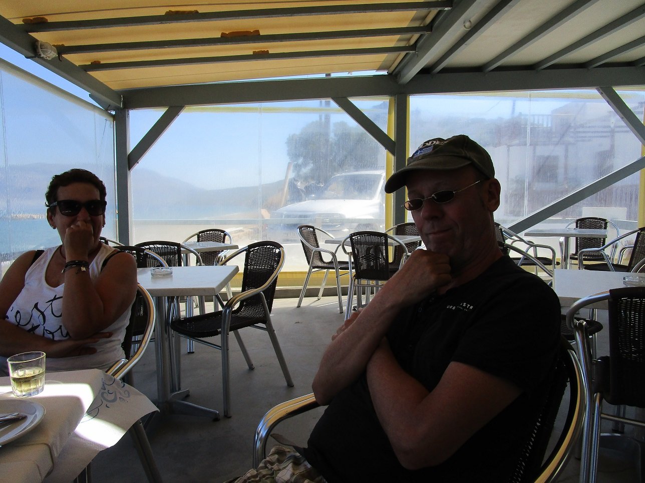 Psariotes Taverna zit in het haventje van het dorp Linaria. Wij bestellen er de spaghetti met kreeft, vis, een Griekse salade en een halve liter witte wijn. De bediening is uitermate vriendelijk en we krijgen een gratis voorgerecht. De spaghetti met kreeft smaakt goed. Het is wel erg veel en dus krijg ik het niet op. Van de twee vissen was er een prima en de andere was helaas niet goed schoongemaakt. De Griekse salade was helemaal in orde. Ons oordeel: een 8 uit 10 |