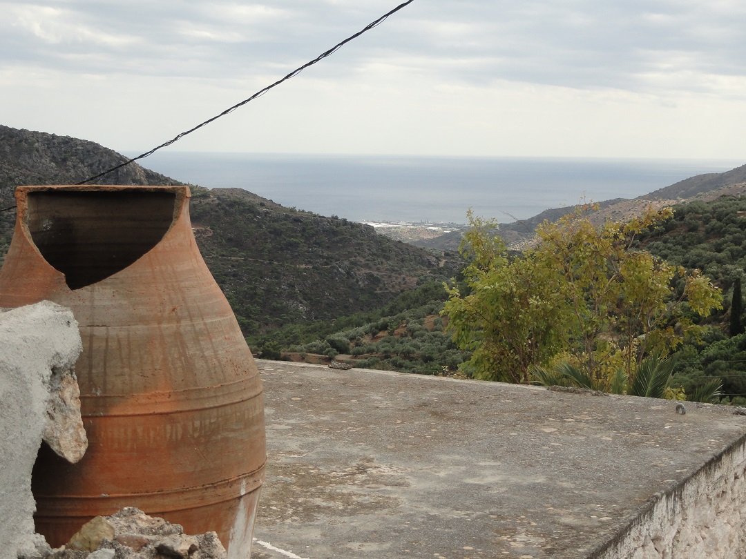 Bij de huizen die blijkbaar wel bewoond worden staan potten met bloemetjes erin en je komt citroenbomen, bougainvillas, vijgen en druivenstruiken tegen die langs de huizen in de nauwe straatjes omhoog zijn geklommen. Op sommige plekken, vooral beneden in het dorp en bij de hogerop gelegen kerk is er een prachtig uitzicht op de zee. |