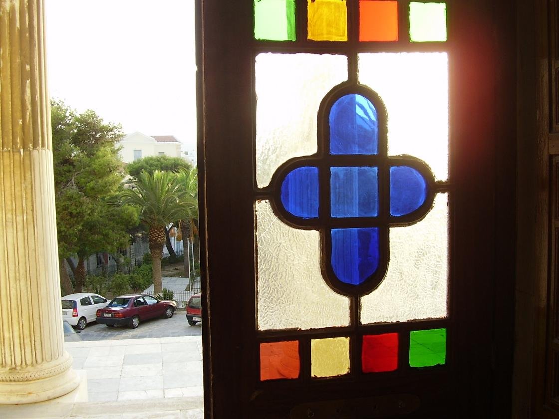 Ermoupolis looks nothing like the other Greek harbors in the Cyclades, but rather as a city like Paris. On the left side of the harbour are tankers, and there are high cranes. There are also ships in the dry-docks to be cleaned up. Most of them former ferries from distant countries, which are in this capital to get a lick of paint and new carpet before they will sail between the Greek islands. There is plenty of activity in the port and on the quay where the ferries arrive, and cars drive off and on. My advice is this: look beyond this, because on second glance, the island is not so busy as you would think. Behind the quay where all traffic is you find yourself directly in the silence. A lot of roads are not suitable for cars, just because they are steep and there are stairs instead. Because Syros does not have many beautiful beaches there are no cruise boats, and tourists are inclined to sail past the island. Partly because of this is the island remained authentic, with better and cheaper restaurants than on the more commercial neighbouring islands, and lower prices for people who look for an accommodation. Ermoupolis is not a typical Cycladic city with white cubic houses, but instead you will find a lot of large houses of the nineteenth century (I though it had a bit an art-nouveau look, neo-classical, and sometimes it felt like walking through Paris). The buildings on the hill where the Roman Catholic church stands, form the old original Chora. If you want to go to one of the two churches on the hills be prepared to climb many stairs. The views you get as a reward will be great. I think this is really a nice city, because it is so different from any other places that I have seen on the Greek islands. There is also a relaxed atmosphere and the people are very friendly, not stressed or busy, what you might expect in a city of this size. |