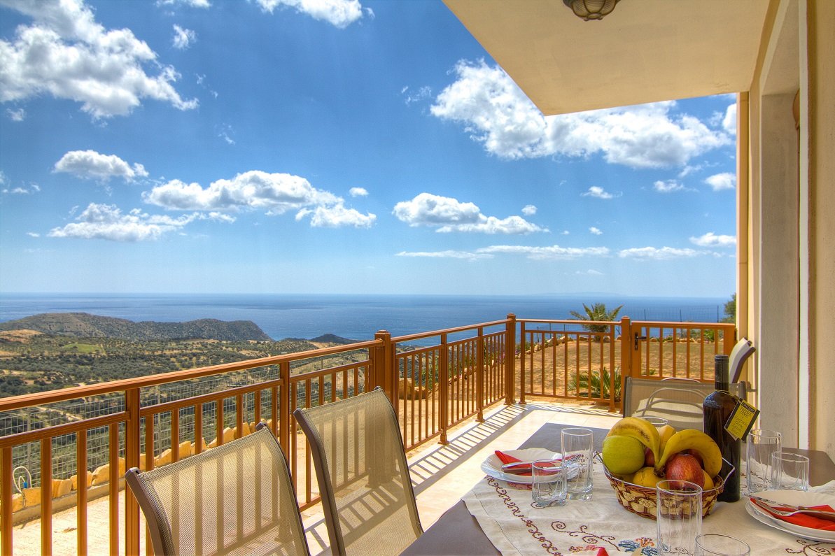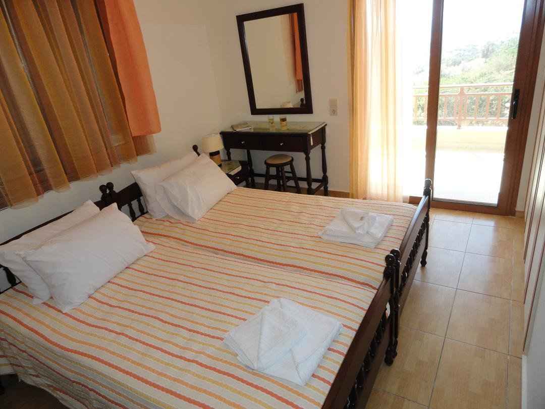 De Triopetra Villas zijn voor de rustzoekers. Er zijn er in totaal vier: twee op ongeveer een kilometer afstand van het strand en twee op drie en een halve kilometer van het strand. Ze zijn makkelijk te herkennen, ook al was het alleen maar omdat er niet veel bebouwing is in deze omgeving. Ze staan alle vier aan de rechterkant van de weg. Bij alle villas is ruime parkeergelegenheid achter de huizen. In 2011 hebben wij een aantal dagen in een van deze villa's gelogeerd en in 2014 zijn we er nog een keer naar terug gegaan. Wat ons hier zo bevalt is vooral de rust en de stilte, het mooie uitzicht en de vriendelijkheid van de mensen die in deze streek wonen. In de kleine bergdorpjes hier is het tourisme nog helemaal niet doorgedrongen. Bij aankomst stond de eigenaar ons al op te wachten met de sleutel en hij gaf ik het kort uitleg over hoe een aantal dingen werkte. De villas zijn ruim met een grote leefruimte beneden (banken en stoelen, eettafel etc) en een mooie keuken met alles erop en eraan, inclusief magnetron, koffiezetapparaat, vaatwasser en een knoepert van een koelkast. Ook waren er een grote hoeveelheid pannen en koekenpannen, serviesgoed, glaswerk en bestek. Mensen die dus liever thuis een maaltijd in elkaar willen zetten kunnen hier goed uit de voeten. Beneden is er tevens een (tweede) toilet. Boven zijn twee slaapkamers: een twin en een double. Ook vind je hier de badkamer met ligbad, toilet en wasbak. In de badkamer staan ook een wasmachine en een droger. Beide slaapkamers hebben een ruim balkon met zeezicht. Beneden is een grote veranda waar je een eettafel met stoelen kunt neerzetten (stond binnen toen wij aankwamen). Allemaal lekkere plekken om 's avonds met een wijntje naar de zee en naar de sterren te kijken nadat je overdag op het strand hebt gelegen of bezienswaardigheden in de omgeving hebt bezocht. |