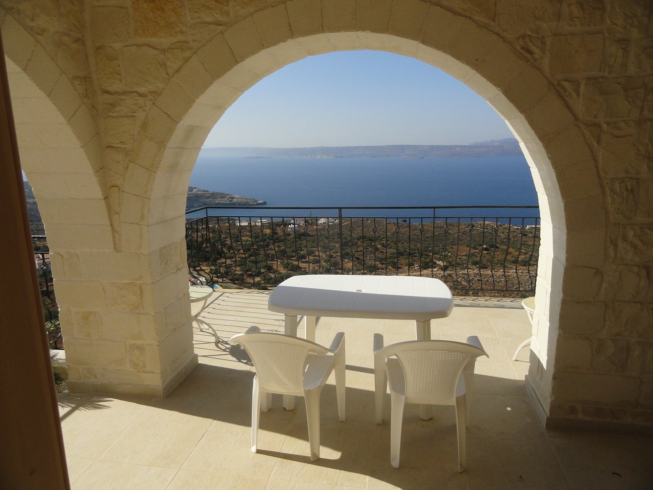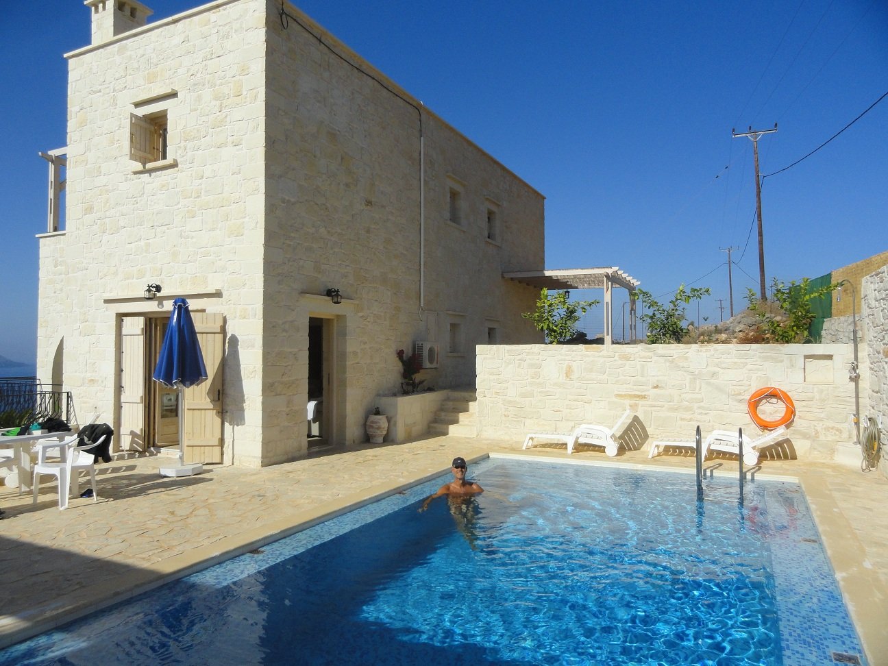 Villa Athina is situated on a hilltop in Kokkino Chorio, a village just east of the city of Chania, in the area called the Apokoronas. In October 2012 we were one of the first visitors in this new house which is built in traditional style, with stone and round arches between the rooms and the terraces. The villa has a private pool and is set in a very private location (not overlooked). The view from the grounds of the villa and the various verandas is phenomenal. You look out over the sea, three peninsulas (Apokoronas, Akrotiri and Rodopos) and three islands, including Souda Island with its fortress and the island of Karga, that lies in front of the village of Almyrida. There are views over the bay of Souda,the naval base, the fort Izzedine and you see the cruise boats and ferries sailing in on their way to the harbour of Souda. On the west side you look out over the village of Kokkino Chorio with its church and behind it you can see the White Mountains. In the distance you can distinguish some other villages. In the pictures below you will get an impression of the view, but in reality it is much better of course. You can also take a look at the movies that I have made to see it a little better. Villa Athina is located in a very quiet spot and has a lot of privacy, so especially suitable for people that love peace and quiet and possibly want to swim without swimwear. It is a "non smoking" villa, so that means that within the villa smoking is not allowed. Outside on the terraces of course you can. The square of Kokkino Chorio with the mini-market and taverna is within walking distance. I must confess that I myself didn't go there during the days that I stayed at Villa Athina, just because I felt at home, didn't want to leave and so I made some simple things in the kitchen. We had a lot of groceries in our car when we arrived and there was also a welcome pack in the villa with various kinds of vegetables, fruits, milk, orange juice, wine, water, bread, jam, feta cheese (goat cheese), butter, biscuits, tea, coffee and sugar. There were also extra rolls of toilet paper, dishwasher-tablets, a new sponge, detergent, washing powder, soaps, liquid hand soap pumps etcetera. In the villa there are also two great books of my friend Frankie Miles: one with general information about Crete and one with all things that are useful to know, and a very nice book with all kinds of trips you can make by car to view special things in the area. |