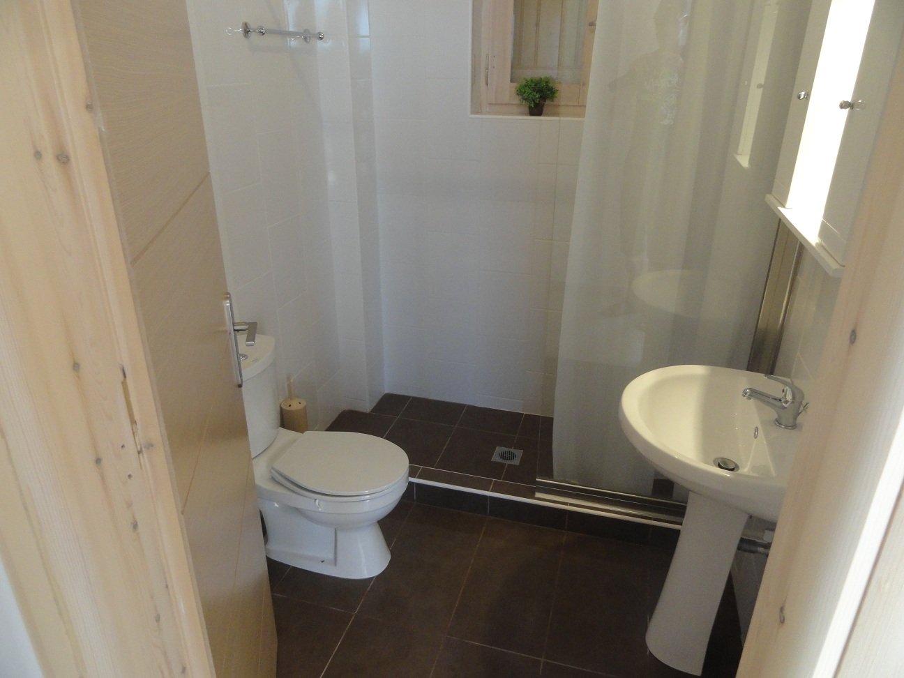 Upon entering Villa Athina on the on ground floor you will first see the living room with a few benches and a chair. There is a TV with satellite connection (with good channels with movies, series and news) and built-in DVD player. There are also a number of DVDs in a closet and there are various games that you can play. You walk further, and then walk along the staircase that leads upstairs and a bathroom with bath / shower and toilet. You can continue to the first bedroom which is also on the ground floor. Left is the large kitchen with dining area for six people. The kitchen is fully equipped with lots of pots and kitchen appliances such as coffee maker, a kettle, a toaster, a dishwasher and a microwave. There is also a washing machine in the villa. From the living room, the bedroom and the kitchen there is access to the large terrace in front of the house. The staircase leads to the second floor. Here are two more bedrooms with a bathroom located in between, with shower and toilet. The master bedroom has its own bathroom en suite. Also from these two bedrooms there is access to a large terrace with a beautiful view. Villa Athina can accommodate up to six people. The price for the rental of the villa starts at 700 euros per week (2012). |