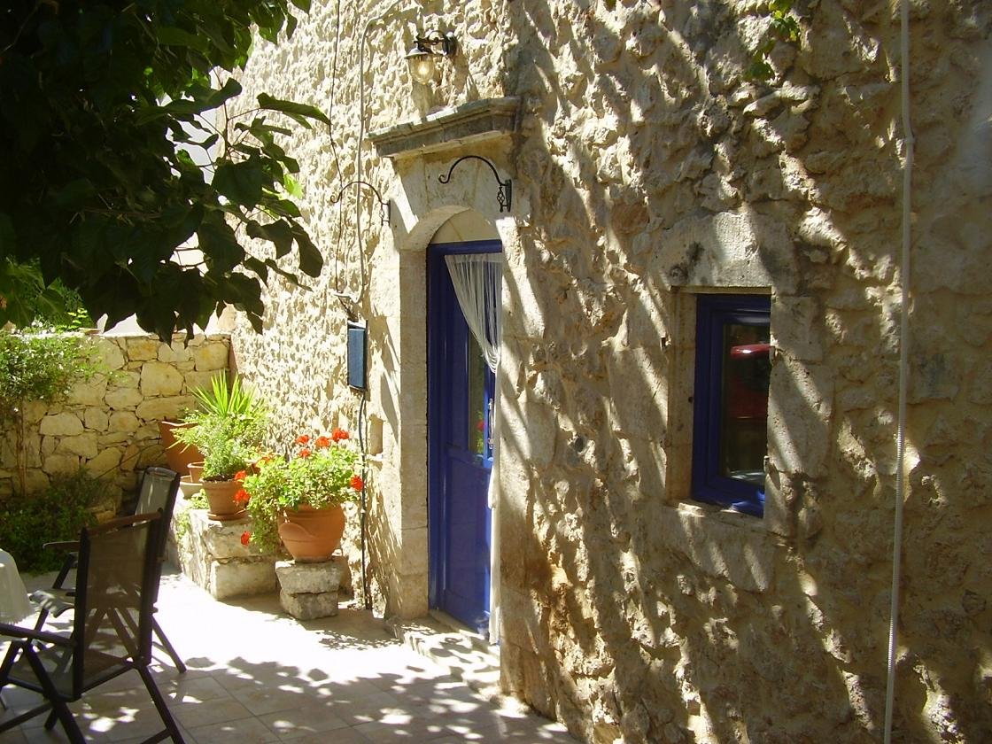 Villa Atlantis House has two spacious bedrooms and can accommodate up to 5 people. One of the bedrooms has one double and one single bed and the master bedroom has a king-size bed. From the window of the master bedroom there are views over the sea and the bay of Almyrida. The mattresses are wonderful and there are extra pillows on each bed. On this floor there is also a nice terrace with table and chairs. Everywhere in this house there are doors opening to terraces where you can sit and have a drink or something to eat, and you can always choose a different view, or sit in the sun or in the shade. If you book this villa you will get a welcome pack which includes the book "Crete on the Road" by Frankie Miles. This is really a great book that describes all kinds of routes in the area and other parts of Crete (the west and south). This is a teriffic guide if you are going out for a drive to look at things, plus there is lots of great information that you will never see in any other guide. |
