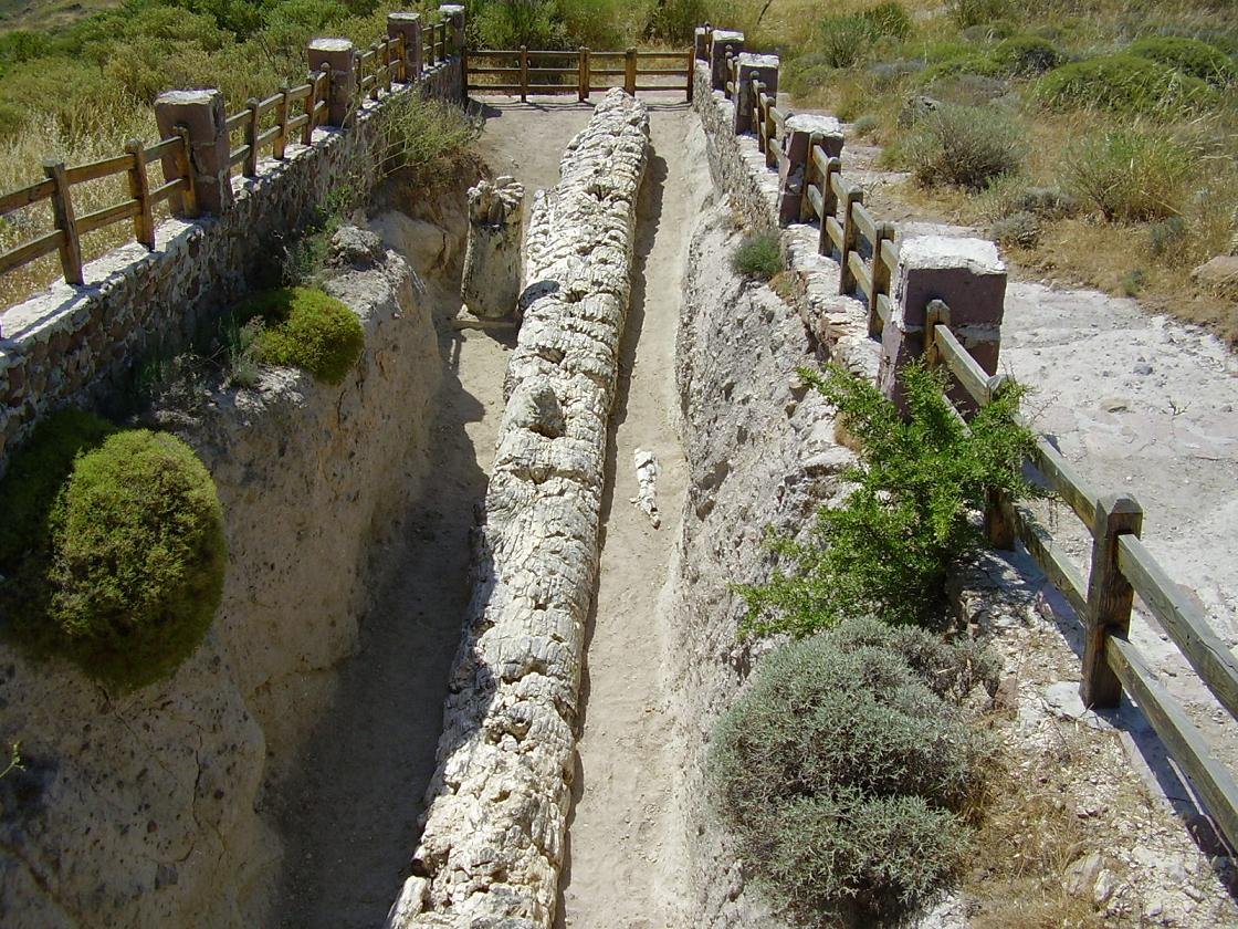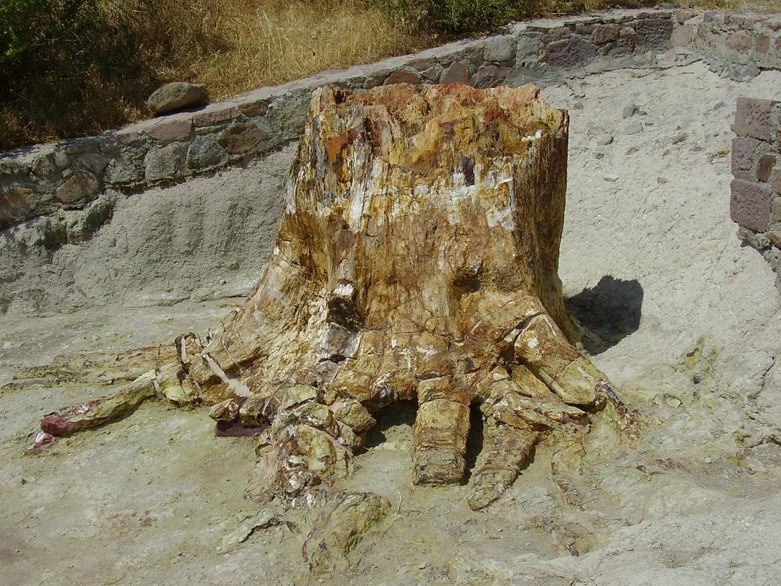 Het versteende woud op het eiland Lesbos ligt in het westen van het eiland aan het einde van een zijweg (ongeveer 5 kilometer) op de route van het dorp Andissa naar Sigri. Het versteende woud is een beschermd natuurgebied en de bomen zijn twintig miljoen jaren oud. Het zijn zogenaamde mammoetbomen (Sequoia dendrum giganteum). Het versteende woud is ontstaan toen na een vulkaanuitbarsting de bomen werden bedolven onder vulkanische as. Het woud ligt in een dal en er zijn brede trappen naar beneden langs de liggende boomstronken en rechtopstaande restanten van bomen. In mei waren er ook heel veel vlinders. De taverna bij de ingang heeft zitjes die gemaakt zijn van stukken boomstam. Deze bezienswaardigheid is omgeven door een hek en de intree voor het versteende woud is 2 euro (2006). Ook op het eilandje voor de kust van Sigri (Nisiopi) liggen nog eens duizenden versteende bomen, sommige op het eiland zelf, maar er zijn er ook die half in de zee liggen.
